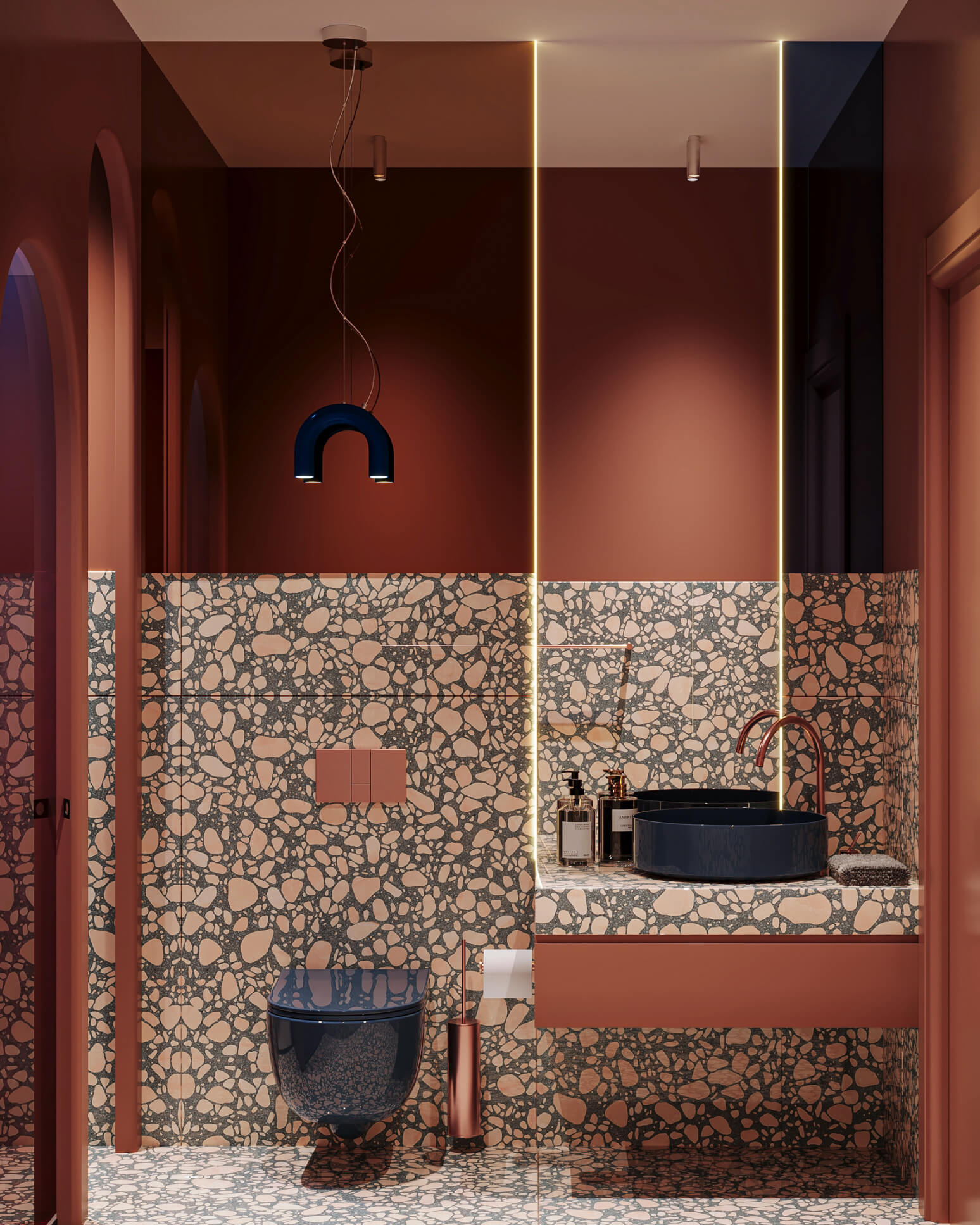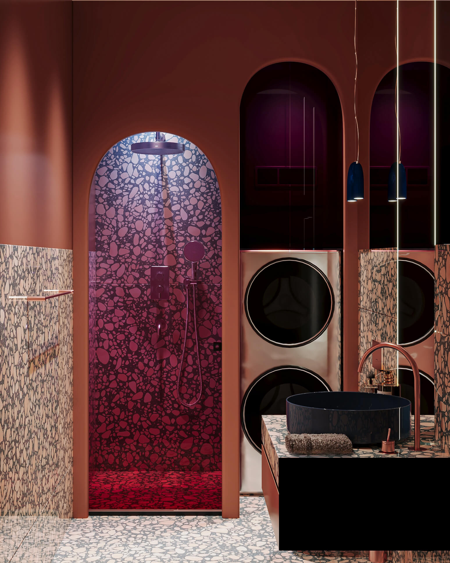 Kupatilo dodatno naglašava karakter enterijera i daje mu gotovo galerijski kvalitet. Rezultat je savremen dom sa izraženim identitetom – smiren, ali hrabar, minimalistički u formi, a bogat u atmosferi. Prostor koji ne prati trendove doslovno, već ih tumači na ličan i sofisticiran način.